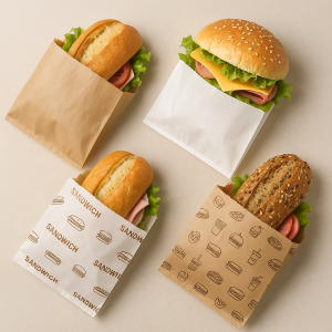 پاکت کاغذی ساندویچ نوعی بستهبندی از جنس کاغذ بهداشتی و مقاوم است که برای نگهداری، حمل و ارائه انواع ساندویچ، برگر، هاتداگ و سایر فستفودها به کار میرود. این پاکتها معمولاً از کاغذ کرافت، کاغذ مومی یا کاغذ گلاسه ساخته میشوند و میتوانند به صورت ساده یا با چاپ اختصاصی تولید شوند.