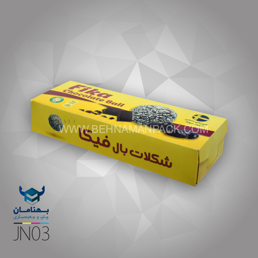 جعبه شکلات – کد JN03 یکی از محصولات بهنامان پک است. ابعاد این جعبه بهطول 22، عرض 8.5 و ارتفاع 4.5 است. جنس این نوع جعبه از مقوای ایندربرد و چاپ آن افست است. طراحی این نوع جعبه براساس هویت برند و سلیقه مشتریان صورت میگیرد.