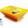 بسیاری از رستورانها و بهخصوص کیترینگها از ظروف آلومینیومی یکبار مصرف استفاده میکند. امکان چاپ برروی ظروف آلومینیومی وجود ندارد، بنابراین شما میتوانید از کاور ظرف آلومینیومی استفاده کنید و علاوه بر طرح زیبا، برندینگ هم انجام دهید. جنس مقوای کاور ظرف آلومینیومی ایندربرد و چاپ آن افست است. ابعاد این جعبه به طول 20، عرض 15 و ارتفاع 6.5 است. طراحی این نوع جعبه براساس هویت برند و سلیقه مشتریان صورت میگیرد.