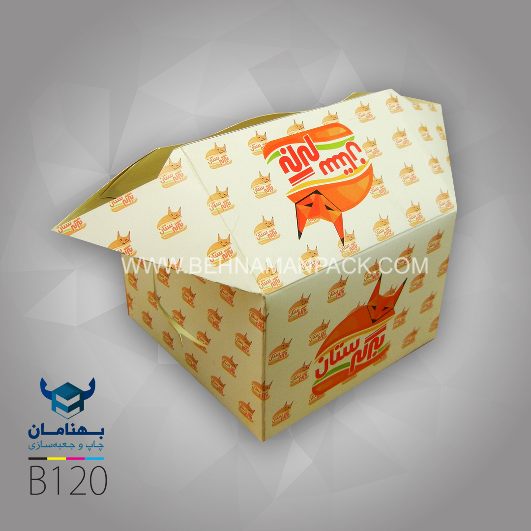 نوع چاپ جعبه همبرگر لاکباتوم قفلشو – کد B120