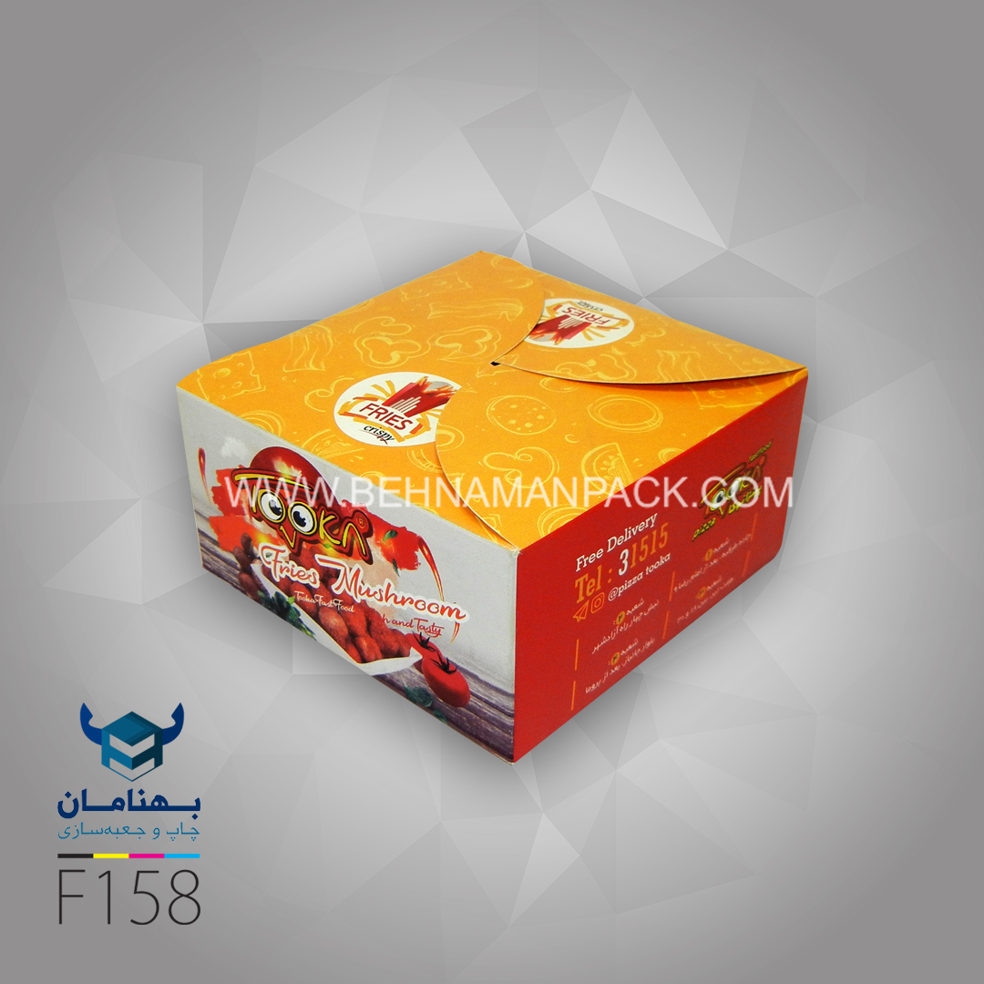 یکی از محبوبترین و پرطرفدارترین غذاهای فستفودی سیب زمینی است به گونه ای که برخی از فست فودی ها به صورت تخصصی و تک محصول سیب زمینی سرو میکنند.بسیاری از فستفودها برای سفارشات بیرونبر و یا سفارشات داخلی از جعبه سیبزمینی درب هلالی11 – کد F158 استفاده میکنند. جنس این نوع جعبه سیب زمینی از مقوای ایندربرد و یا دوبلکس بهداشتی با چاپ افست تولید میشود. ابعاد جعبه سیب زمینی به طول 11، عرض 11 و ارتفاع 6 است. طراحی و نوع چاپ براساس هویت برند و سلیقه مشتریان صورت میگیرد.