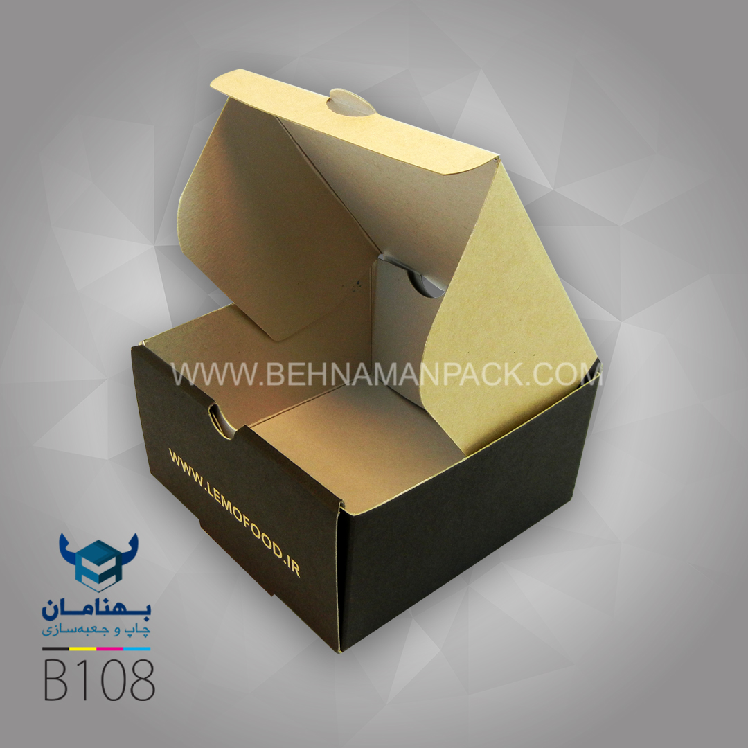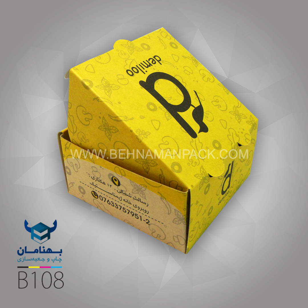 همبرگر یکی از محبوبترین غذاها در سراسر دنیاست. به قدری این غذا محبوب هست که فستفودهایی وجود دارند که به صورت اختصاصی همبرگر تولید میکنند. جعبههای همبرگر برای سفارشات بیرونبر استفاده میشود. جعبه همبرگر درب از بالا 14 – B108 که از مقوای دوبلکس بهداشتی یا ایندربرد با چاپ افست تولید میشود. ابعاد این جعبه همبرگر به طول 14 ، عرض 14 و ارتفاع 7 است. طراحی این نوع جعبه براساس هویت برند و سلیقه مشتریان صورت میگیرد.